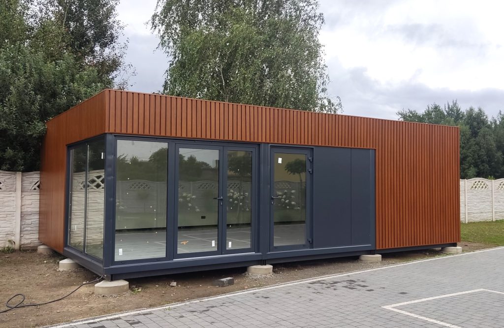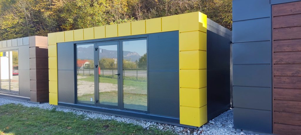 – Kasety elewacyjne na ścianie przedniej w kolorze RAL 6002